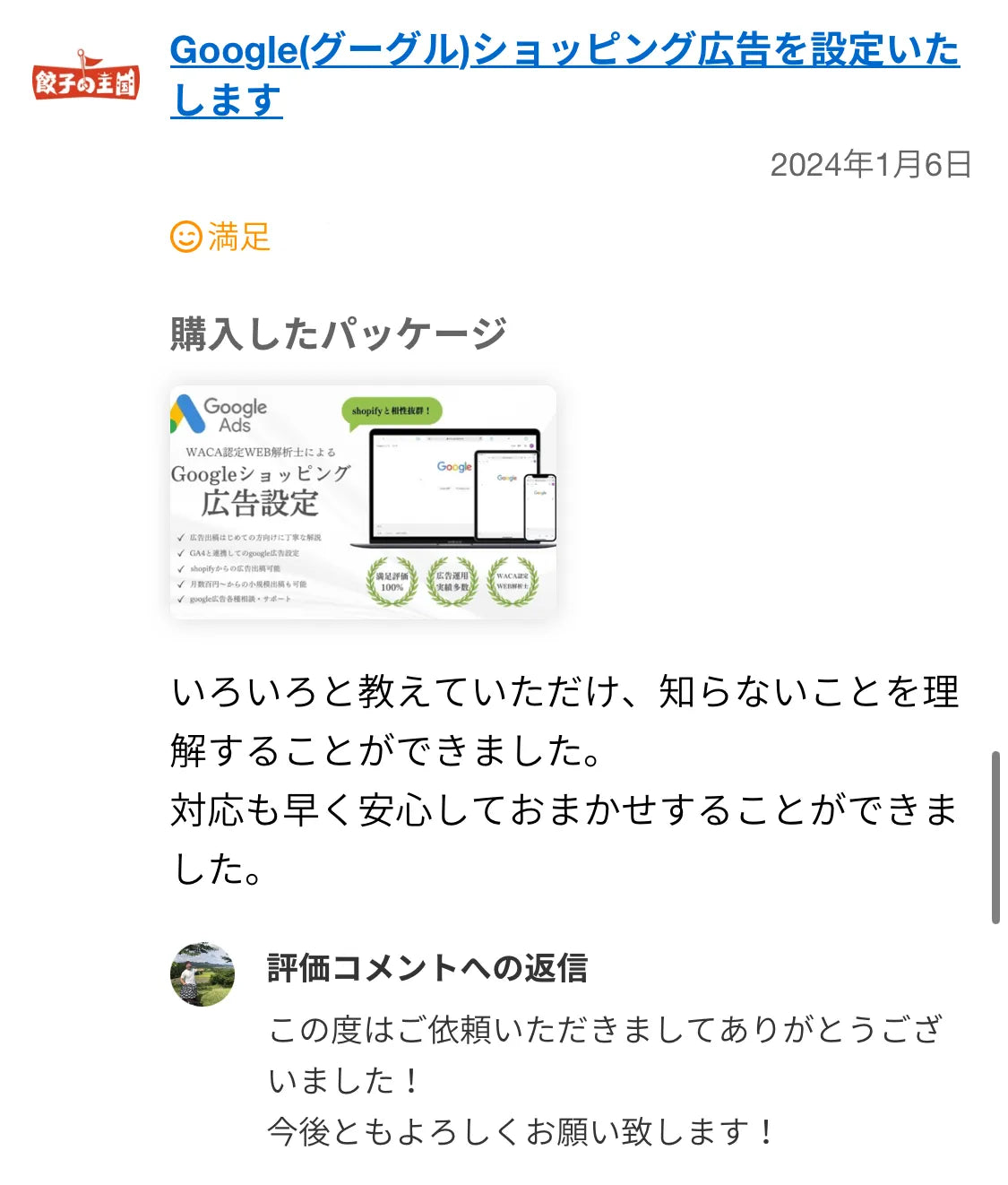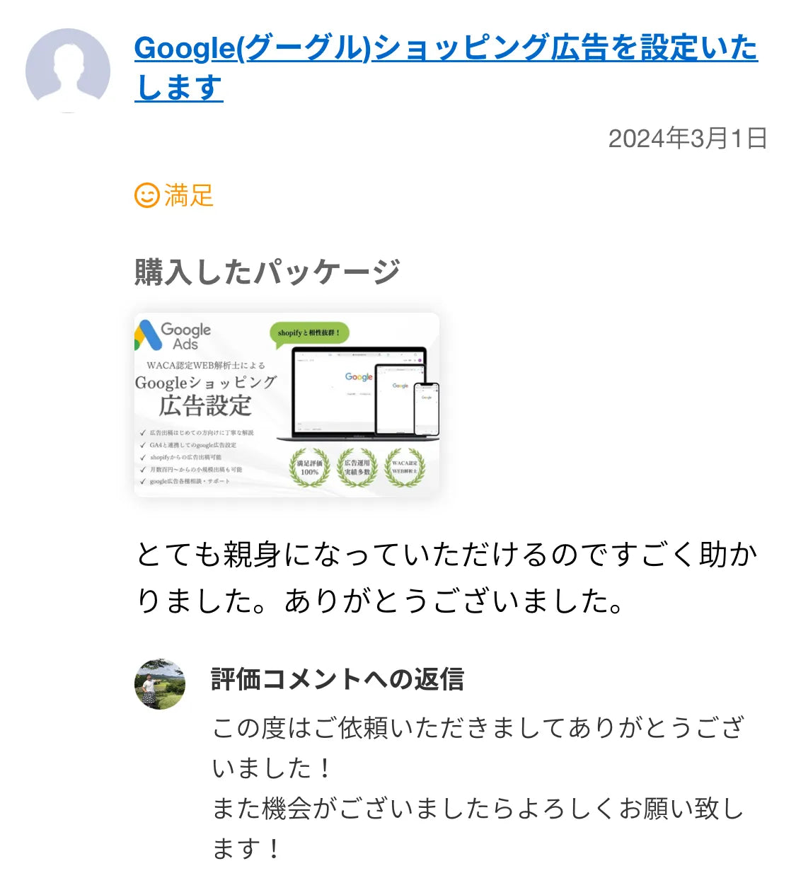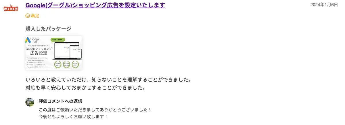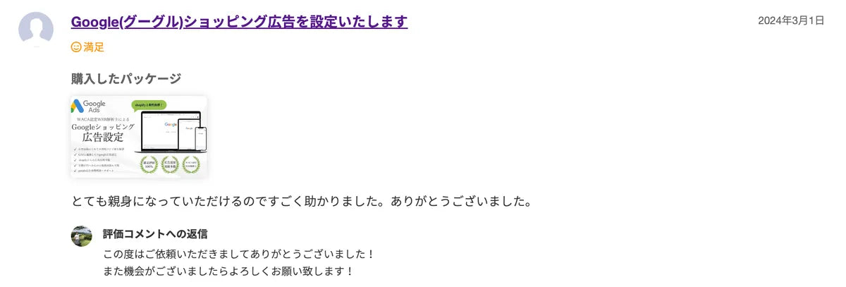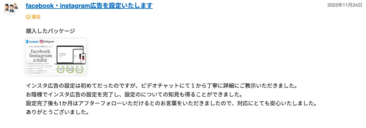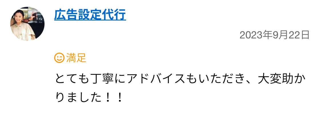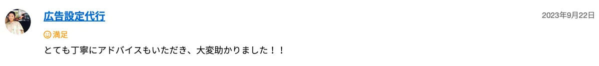 前回もメタ公告の設定などでお世話になり、とても丁寧な対応に感動してリピートでお世話になりました。